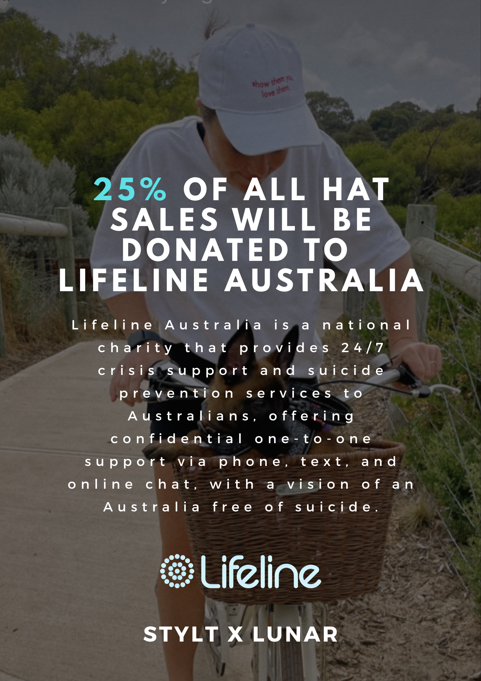 25% of ALL SALES will be donated to Lifeline Australia.