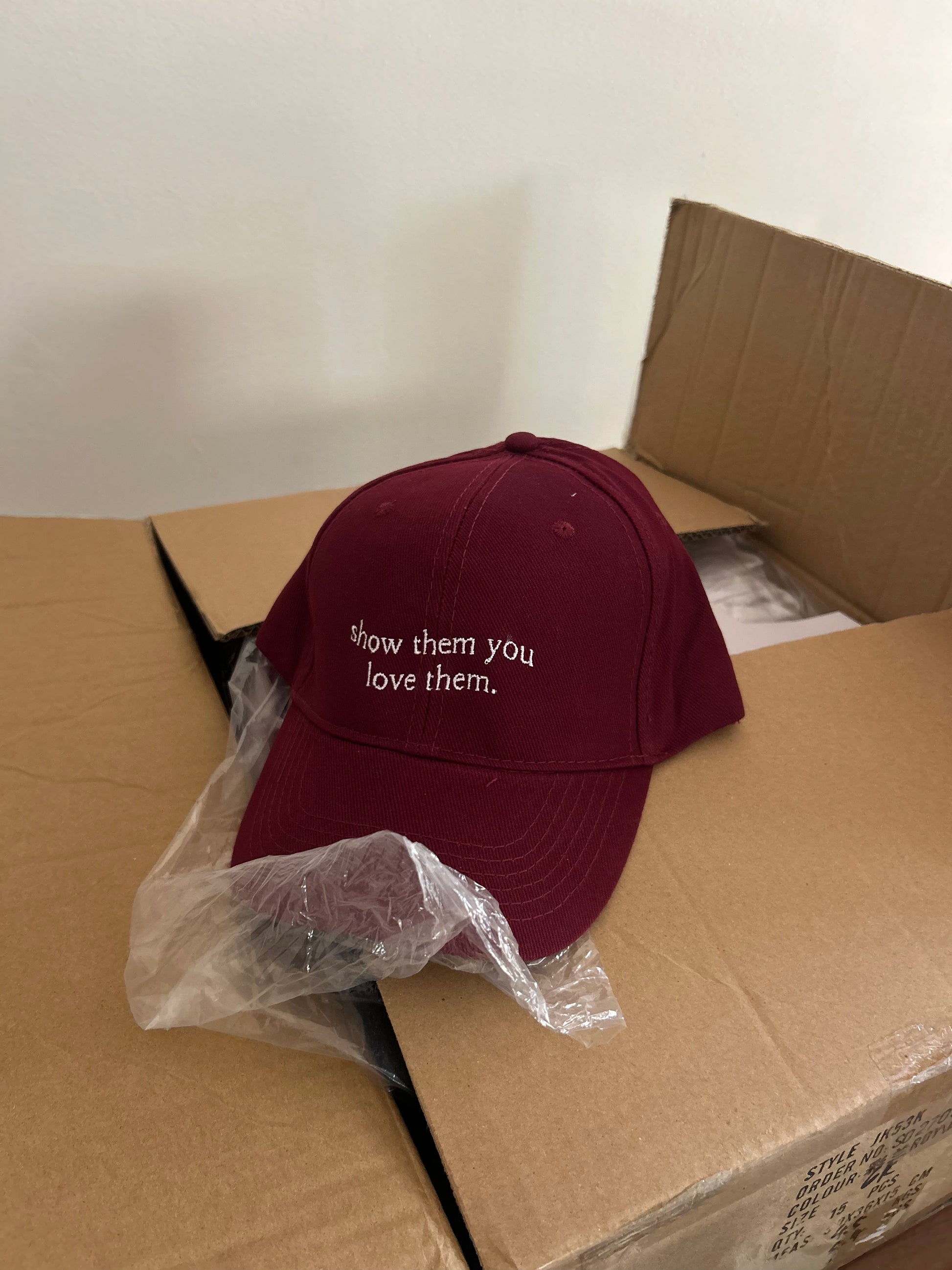 the cap you need IN our NEW colour WINE... a limited edition high-end wine coloured cap, with the show them you love them logo embroidered in white.